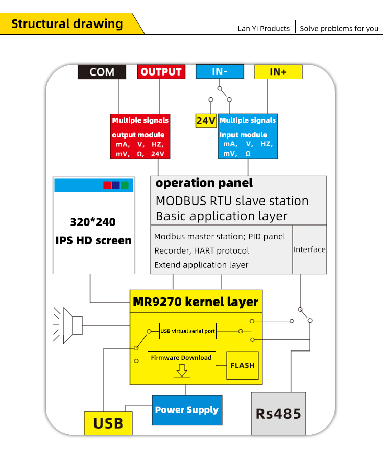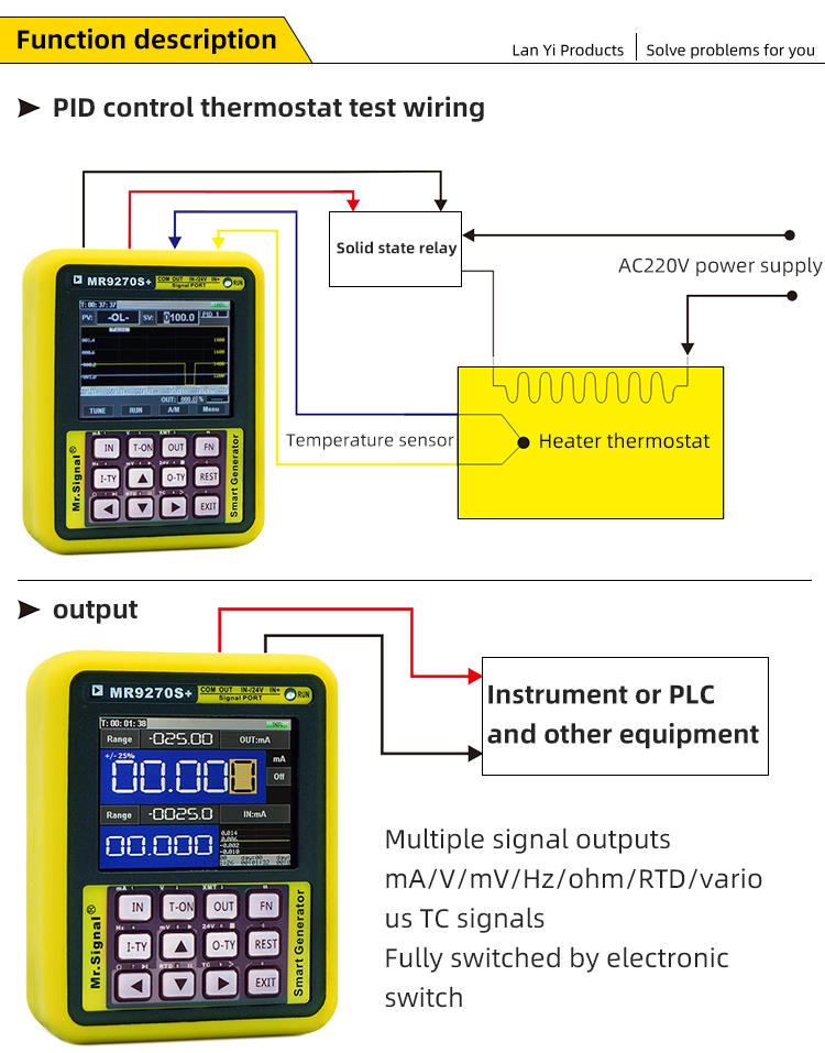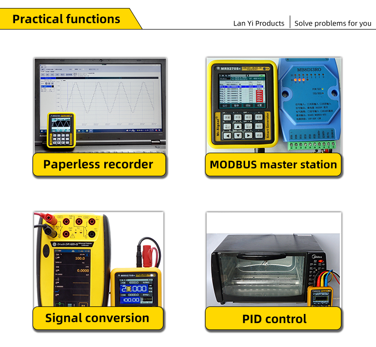 MR9270S+ is a Multi-function signal generator 4-20mA/0-24V,and is applicable to debugging of valves, PLC, frequency converter,transmitter and other equipments.It supports Modbus protocol and be used as a Paperless recorder.